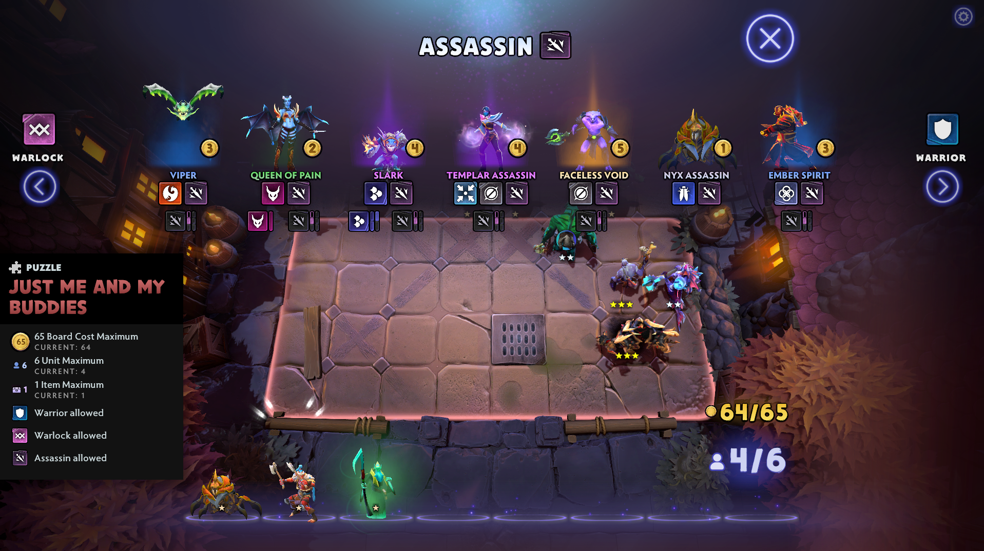 I designed all of the puzzles in Dota Underlords. These puzzles were single-player content that provided a change of pace in the PVP-focused autobattler game.
