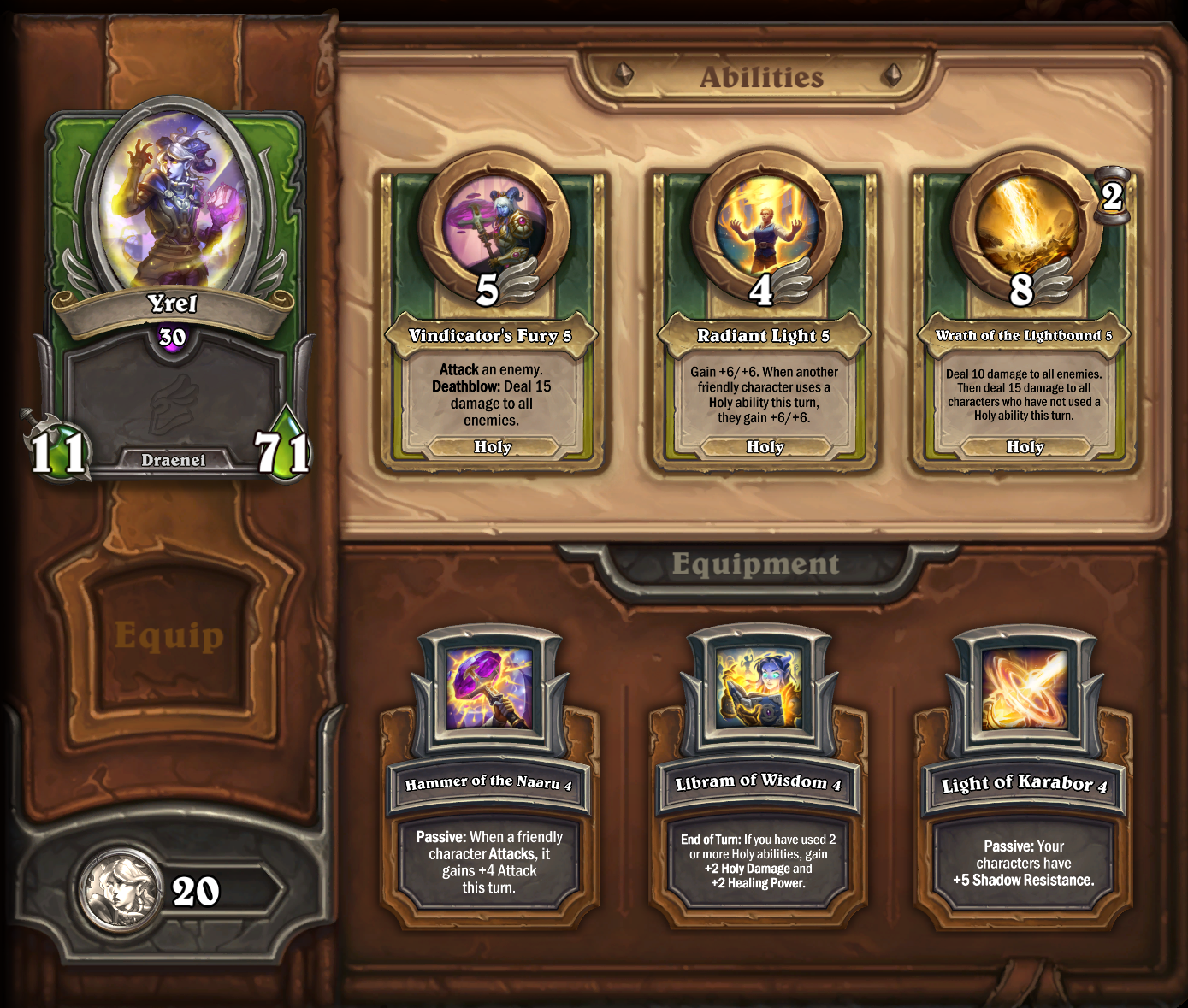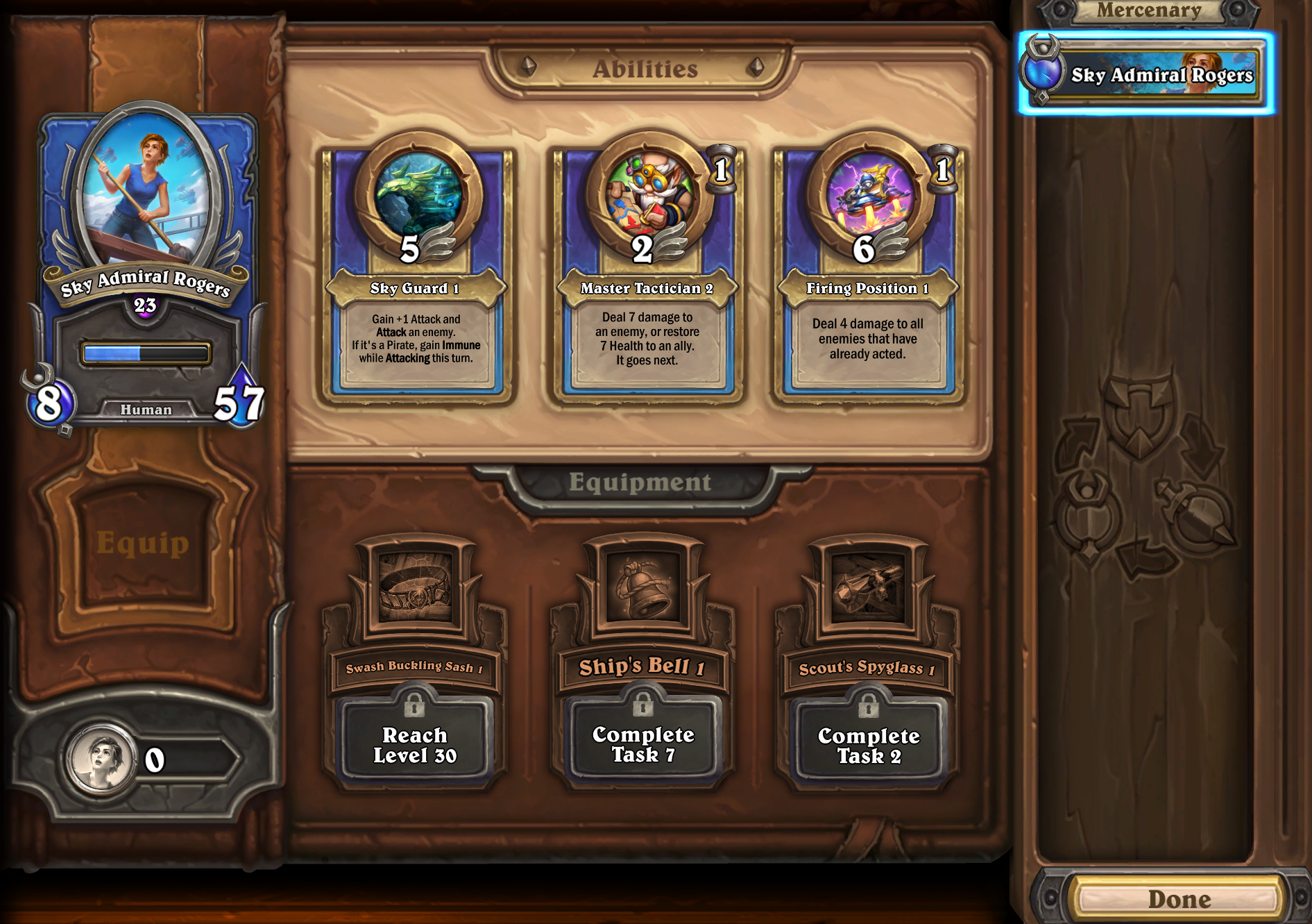 My design role on Hearthstone's Mercenaries game mode focuses on design and implemention, including new boss fights and Mercenary characters. I've also been significantly involved in determining balance changes and design direction for the mode's content as a whole.